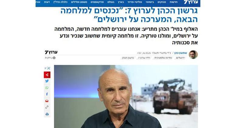 MİLLİYET.COM.TR / İsrailli Emekli General Gershon Cohen, İsrail merkezli Channel 7’ye verdiği röportajda Orta Doğu’daki yeni güvenlik algısını “Kudüs Savaşı” olarak tanımladı ve özellikle Türkiye’ye yönelik çarpıcı uyarılarda bulundu.
